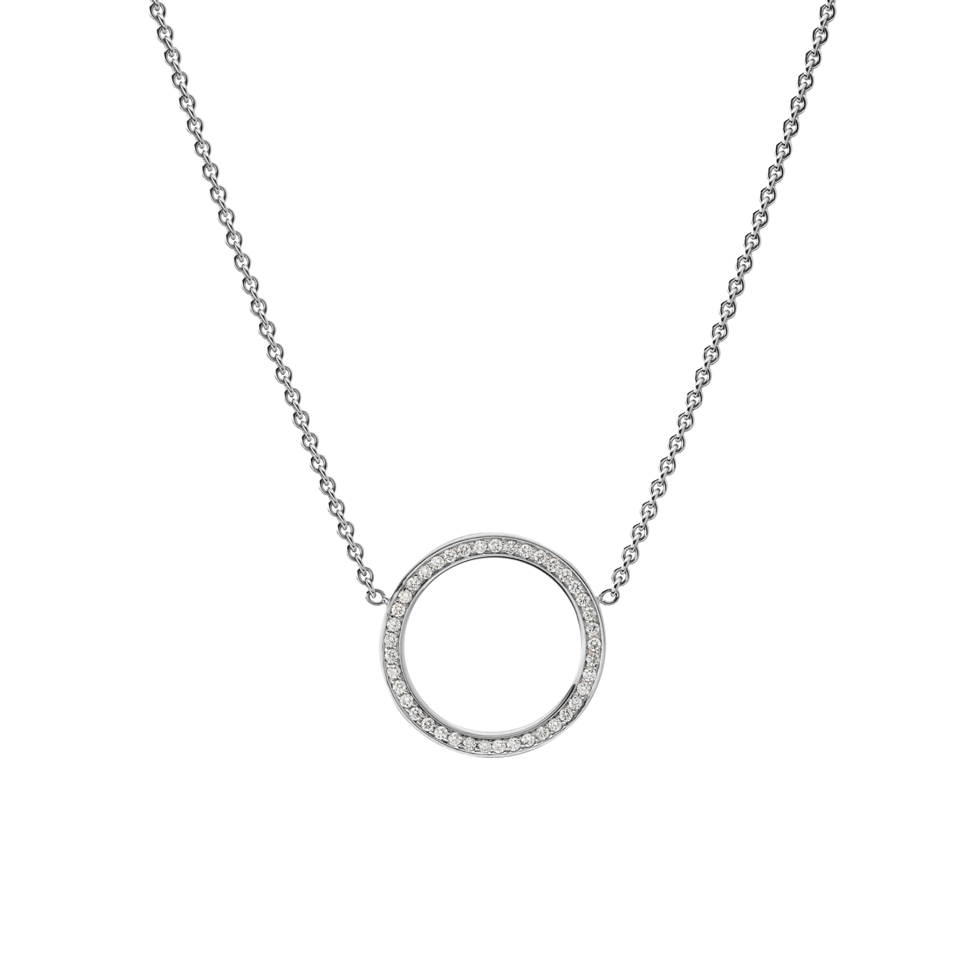 Ref. SH115-WG - Der SATURN-Anhänger ist Ihr Halsschmuck für jeden Tag: passend zu fast allen Outfits, edel funkelnd und trotzdem dezent. Die Kette ist fest an den Anhänger montiert. So sitzt er mal in der Mitte oder wandert etwas zur Seite. Das ist nicht nur okay, sondern erwünscht.