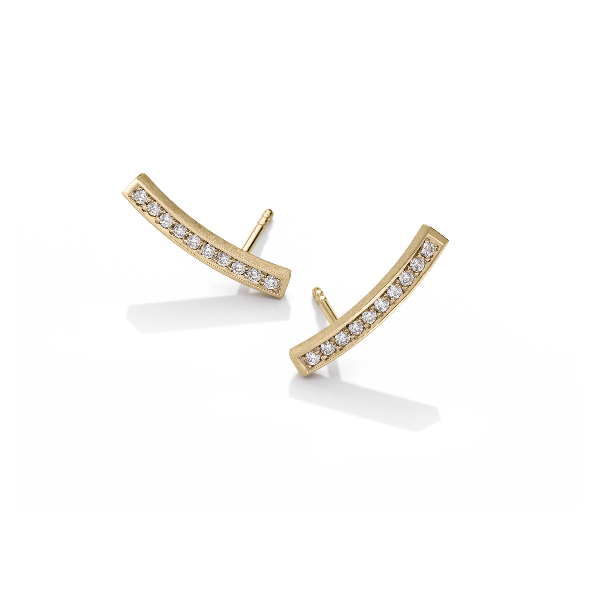 Ref. SO915-GG - Unsere SATURN-Neuheit: ein kleines, leicht geschwungenes SATURN-Element, welches sich perfekt an die Form des Ohrläppchens anschmiegt. Fein und elegant, mit Brillanten ausgefasst. Die etwas größere Variante bietet den perfekten Sitz für jedes Ohr.