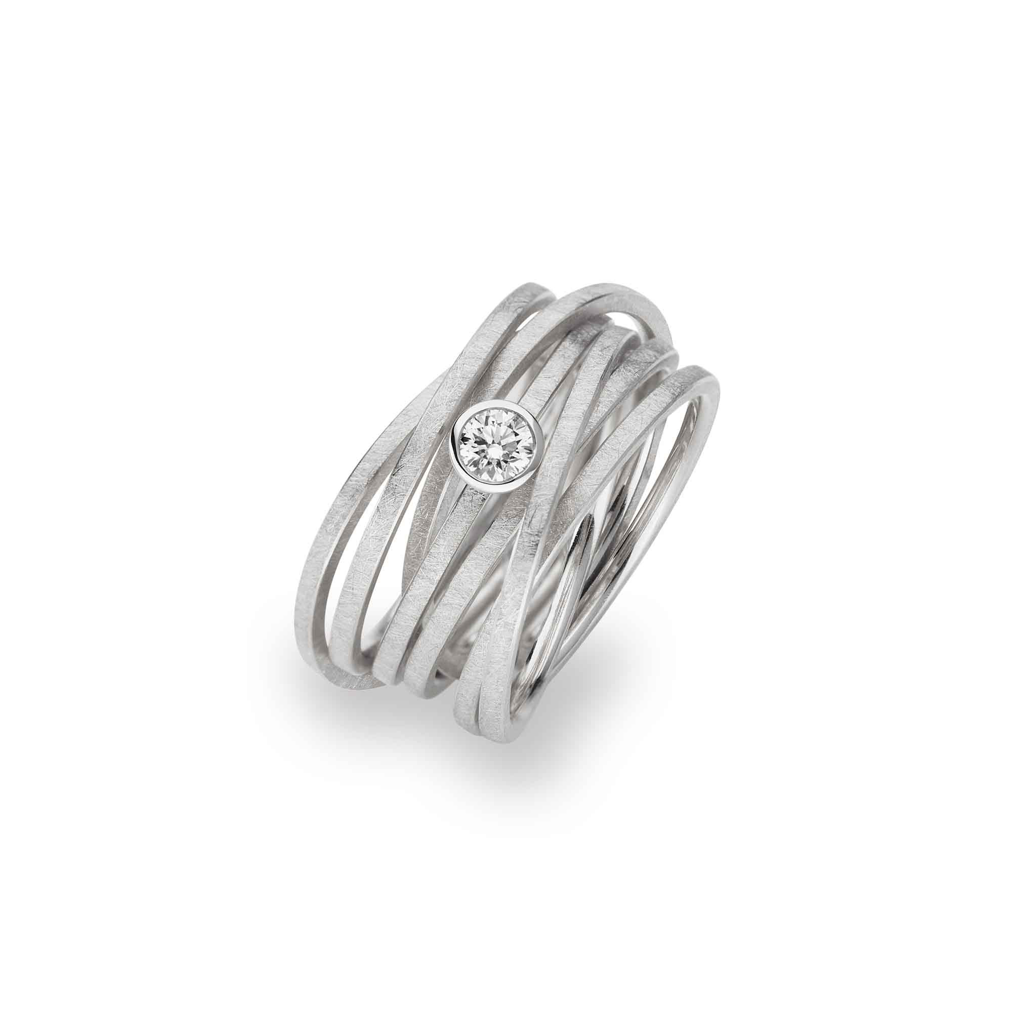 Ref. SR574-PT - Nicht nur ein optisches, sondern auch ein haptisches Erlebnis: der Kettenring mit einem Brillanten in der Fassung. Den Brillant mit seiner Fassung können Sie drehen und ausrichten, wie es Ihnen gefällt. Ein schönes Spiel … viel Freude dabei!