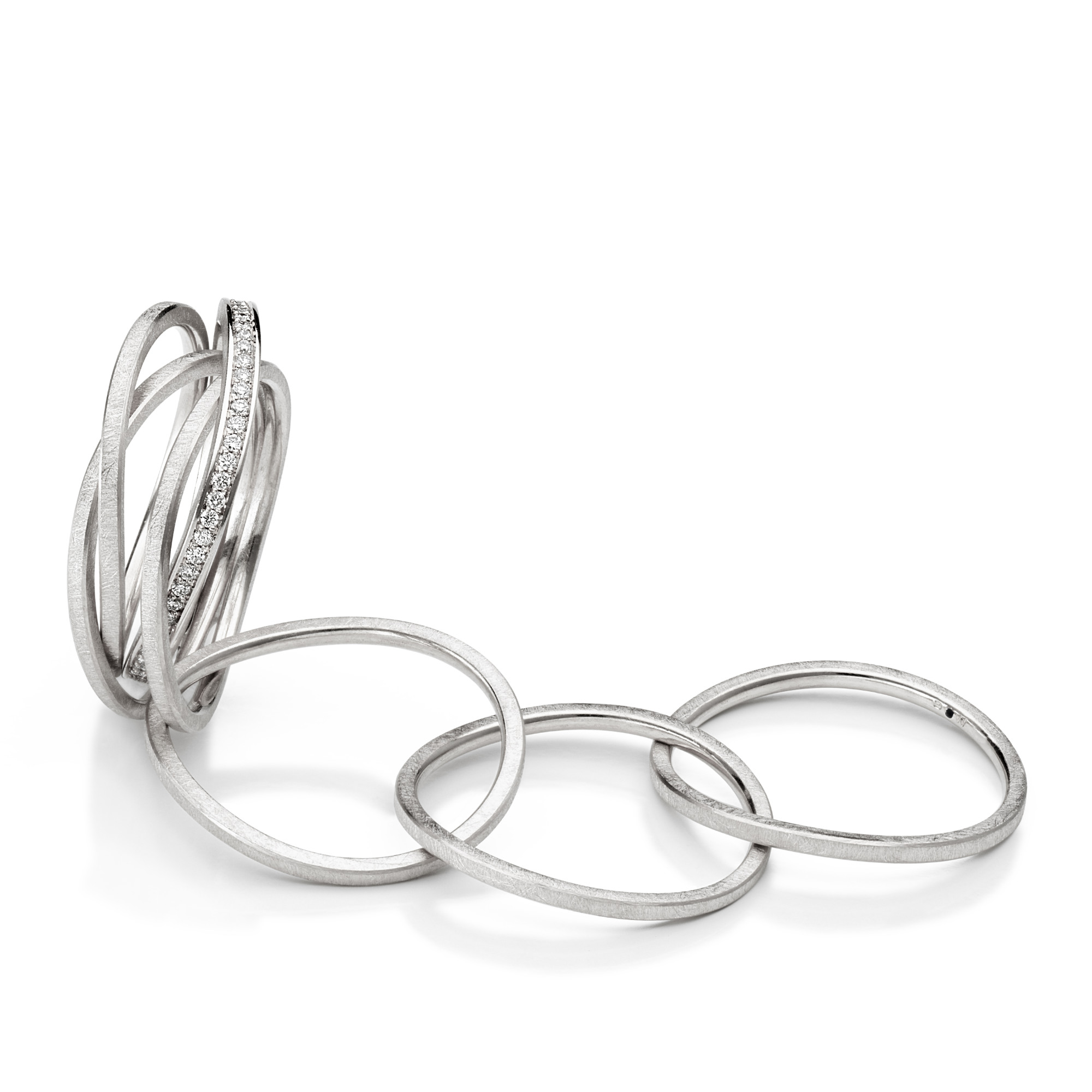 Ref. SR575-WE-PT - Wie die Ringe des Saturn umkreisen die Ringe dieser Kollektion Ihren Finger und es erscheinen immer neue Perspektiven. Bewegliche Elemente und besondere Techniken machen diesen Schmuck zu einem Erlebnis, das mehr Sinne anspricht als nur das Sehen.