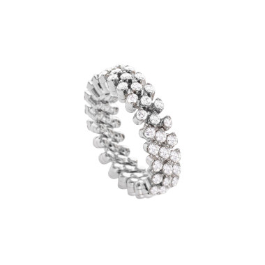 Ref. RMS 3F2 WG WD - Die patentierten Multi-Size Ringe aus der Brevetto-Kollektion sind wahre Verwandlungskünstler. Durch die Kombination aus traditioneller italienischer Juwelenkunst und fortschrittlicher Ingenieurskunst entstehen Ringe, die sich in der Größe spielend leicht verändern lassen. Die vielseitig kombinierbaren Schmuckstücke bestechen außerdem mit ihrer herausragenden Qualität und der Verarbeitung ausschließlich feinster Materialien. Ob als breiter Ring am Ringfinger oder als Eyecatcher am Zeigefinger, die vielseitig kombinierbaren Schmuckstücke aus feinsten Materialien sind in sekundenschnelle wandelbar. - Der abgebildete Ring ist aus 750/- Weißgold gefertigt und vollausgefasst mit Brillanten.