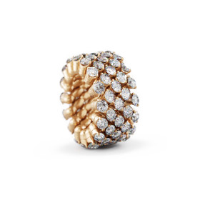 Ref. RMS 5F2 RG WD - Die patentierten Multi-Size Ringe aus der Brevetto-Kollektion sind wahre Verwandlungskünstler. Durch die Kombination aus traditioneller italienischer Juwelenkunst und fortschrittlicher Ingenieurskunst entstehen Ringe, die sich in der Größe spielend leicht verändern lassen. Die vielseitig kombinierbaren Schmuckstücke bestechen außerdem mit ihrer herausragenden Qualität und der Verarbeitung ausschließlich feinster Materialien. Ob als breiter Ring am Ringfinger oder als Eyecatcher am Zeigefinger, die vielseitig kombinierbaren Schmuckstücke aus feinsten Materialien sind in sekundenschnelle wandelbar. - Der abgebildete Ring ist aus 750/- Roségold gefertigt und vollausgefasst mit Brillanten.