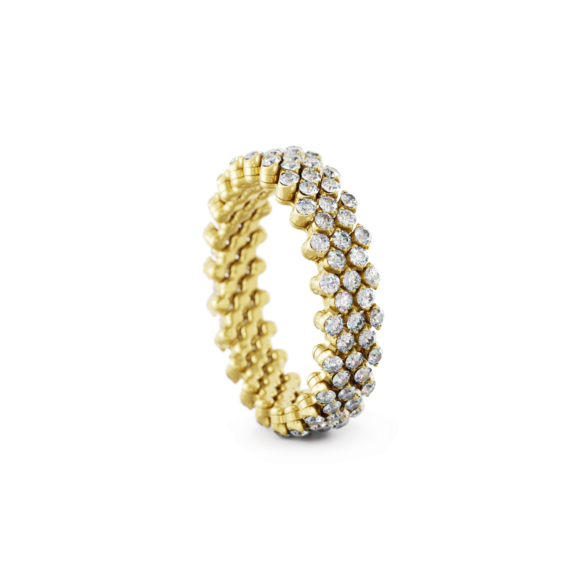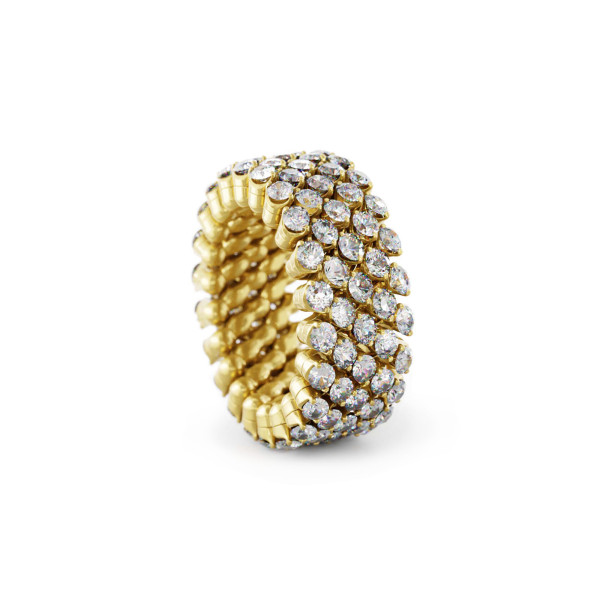 Ref. RMS 5F2 YG WD - Die patentierten Multi-Size Ringe aus der Brevetto-Kollektion sind wahre Verwandlungskünstler. Durch die Kombination aus traditioneller italienischer Juwelenkunst und fortschrittlicher Ingenieurskunst entstehen Ringe, die sich in der Größe spielend leicht verändern lassen. Die vielseitig kombinierbaren Schmuckstücke bestechen außerdem mit ihrer herausragenden Qualität und der Verarbeitung ausschließlich feinster Materialien. Ob als breiter Ring am Ringfinger oder als Eyecatcher am Zeigefinger, die vielseitig kombinierbaren Schmuckstücke aus feinsten Materialien sind in sekundenschnelle wandelbar. - Der abgebildete Ring ist aus 750/- Gelbgold gefertigt und voll ausgefasst mit Brillanten.