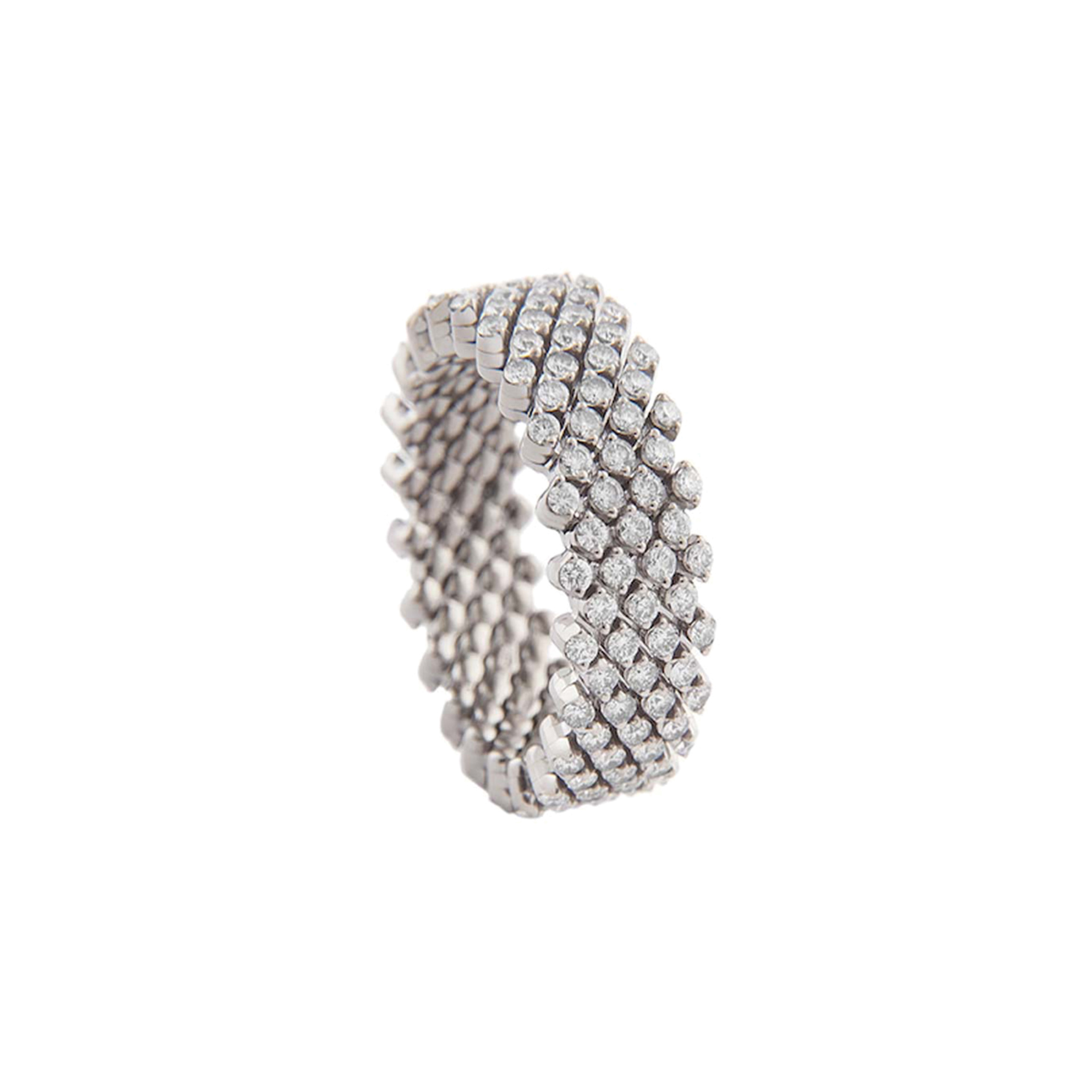 Ref. RMS 7F2 WG WD - Die patentierten Multi-Size Ringe aus der Brevetto-Kollektion sind wahre Verwandlungskünstler. Durch die Kombination aus traditioneller italienischer Juwelenkunst und fortschrittlicher Ingenieurskunst entstehen Ringe, die sich in der Größe spielend leicht verändern lassen. Die vielseitig kombinierbaren Schmuckstücke bestechen außerdem mit ihrer herausragenden Qualität und der Verarbeitung ausschließlich feinster Materialien. Ob als breiter Ring am Ringfinger oder als Eyecatcher am Zeigefinger, die vielseitig kombinierbaren Schmuckstücke aus feinsten Materialien sind in sekundenschnelle wandelbar. - Der abgebildete Ring ist aus 750/- Weißgold gefertigt und vollausgefasst mit Brillanten.