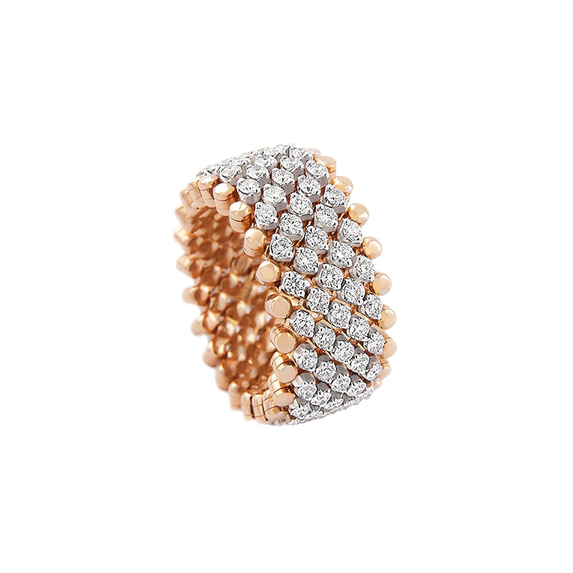Ref. RMS 7M2 RWG WD - Die patentierten Multi-Size Ringe aus der Brevetto-Kollektion sind wahre Verwandlungskünstler. Durch die Kombination aus traditioneller italienischer Juwelenkunst und fortschrittlicher Ingenieurskunst entstehen Ringe, die sich in der Größe spielend leicht verändern lassen. Die vielseitig kombinierbaren Schmuckstücke bestechen außerdem mit ihrer herausragenden Qualität und der Verarbeitung ausschließlich feinster Materialien. Ob als breiter Ring am Ringfinger oder als Eyecatcher am Zeigefinger, die vielseitig kombinierbaren Schmuckstücke aus feinsten Materialien sind in sekundenschnelle wandelbar. - Der abgebildete Ring ist aus 750/- Roségold gefertigt und in der Mitte ausgefasst mit Brillanten.