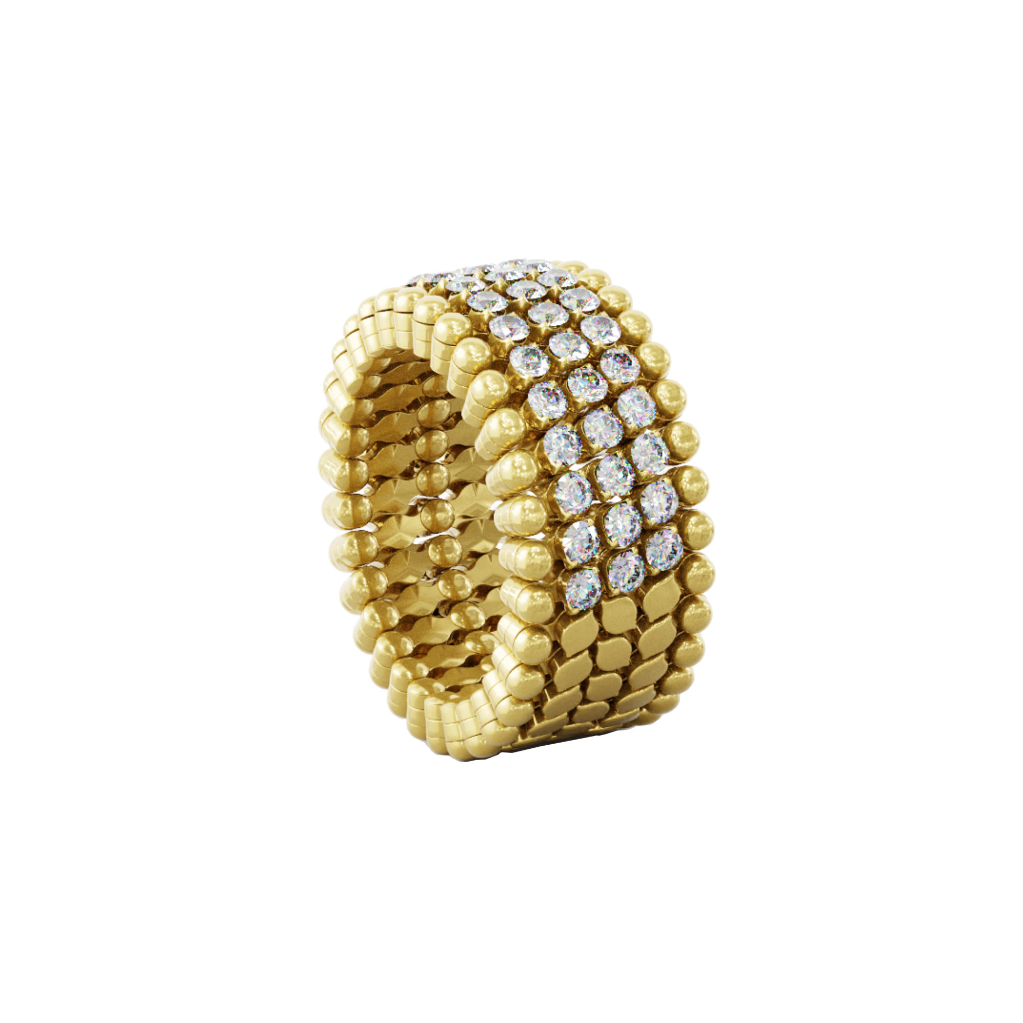 Ref. S.RB 5HM2 YG WD - Dieser patentierte Ring lässt sich von einem Ring bis hin zu einem Armband verändern. Durch die Kombination aus traditioneller italienischer Juwelenkunst und fortschrittlicher Ingenieurskunst entstehen Schmuckstücke, die sich individuell an Ihren jeweiligen Tragewunsch anpassen lassen. Ob als breiter Ring am Ringfinger oder als funkelndes Armband, die vielseitig kombinierbaren Schmuckstücke aus feinsten Materialien sind in sekundenschnelle wandelbar.