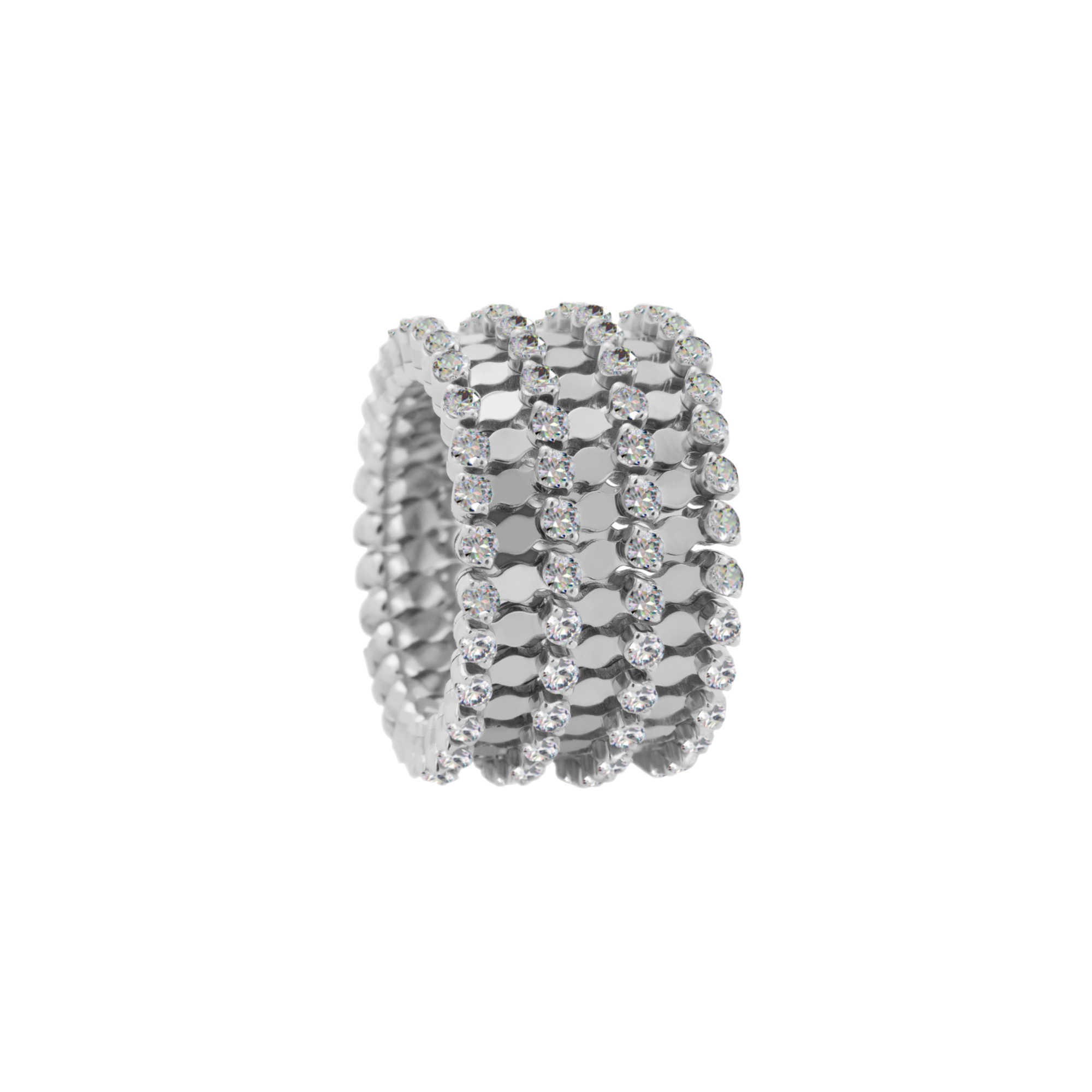 Ref. S.RB A-7F2 WG WD - Diese patentierten Ringe lassen sich von einem Ring bis hin zu einem Armband verändern. Durch die Kombination aus traditioneller italienischer Juwelenkunst und fortschrittlicher Ingenieurskunst entstehen Schmuckstücke, die sich individuell an Ihren jeweiligen Tragewunsch anpassen lassen. Ob als breiter Ring am Ringfinger oder als funkelndes Armband, die vielseitig kombinierbaren Schmuckstücke aus feinsten Materialien sind in sekundenschnelle wandelbar.
