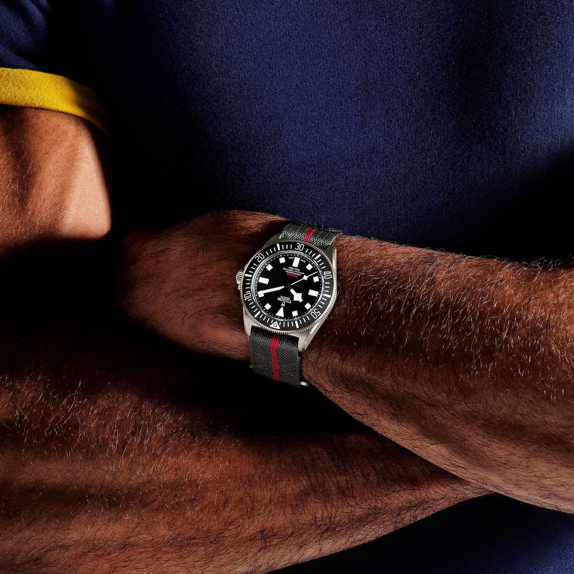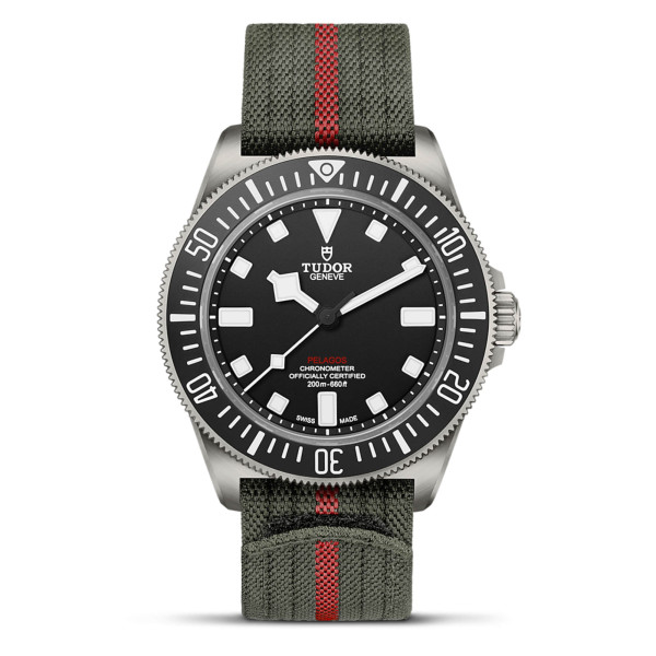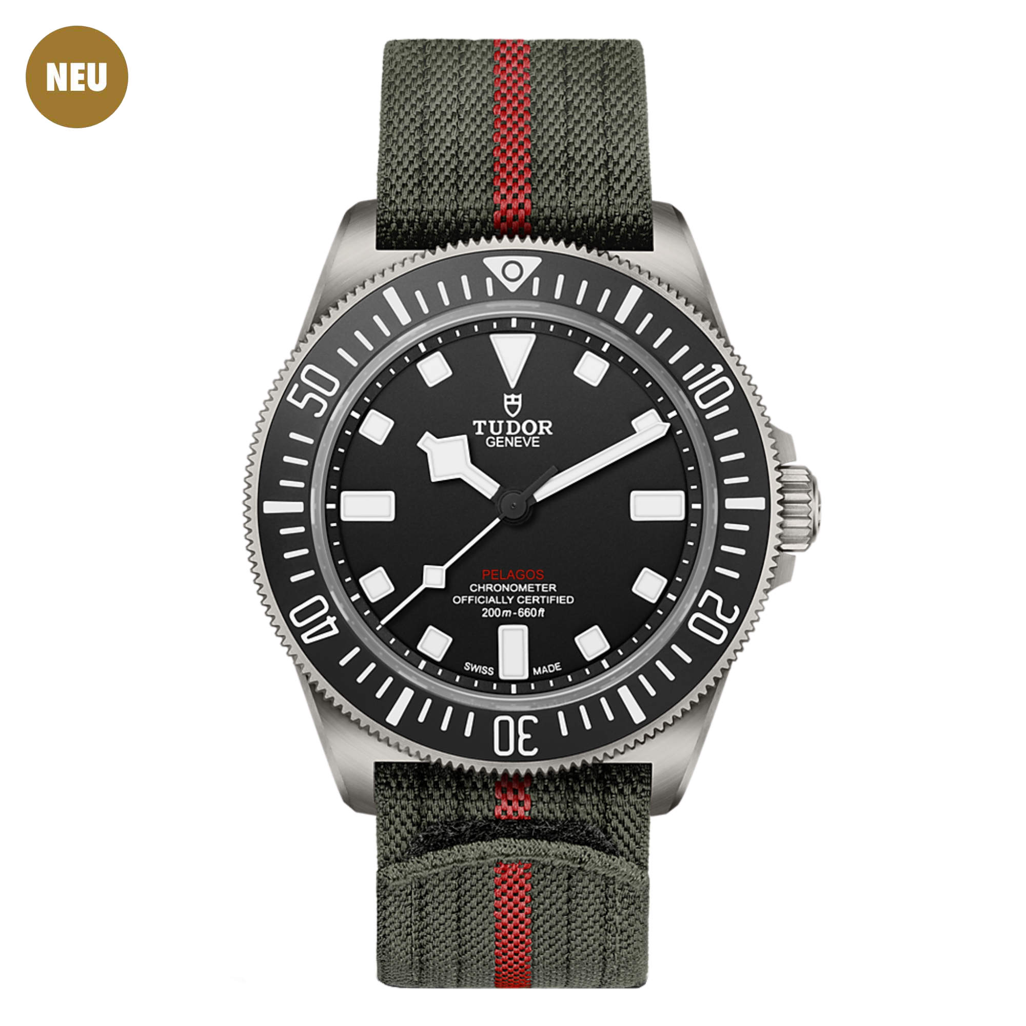 Ref. M25717N-0001 - Die neue Pelagos FXD ist eine Hommage an jene TUDOR Armbanduhren, die die Taucher der US Navy über Jahrzehnte hinweg an ihren Handgelenken trugen. Mit fest angebrachten Bandstegen, einem Gehäuse aus Titan, einem leistungsstarken Manufakturwerk und einer in eine Richtung drehbaren Lünette zur Anzeige der verstrichenen Zeit präsentiert sie sich als ultimative moderne „Milsub“.