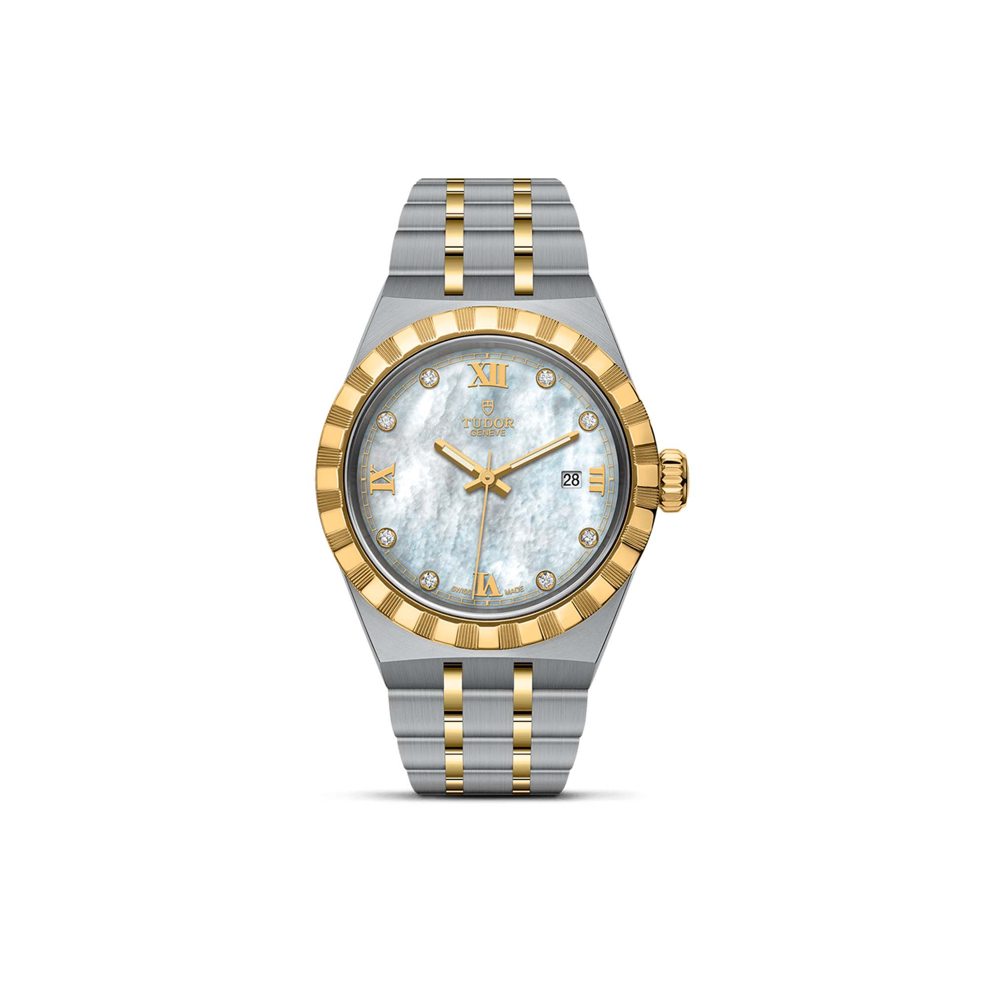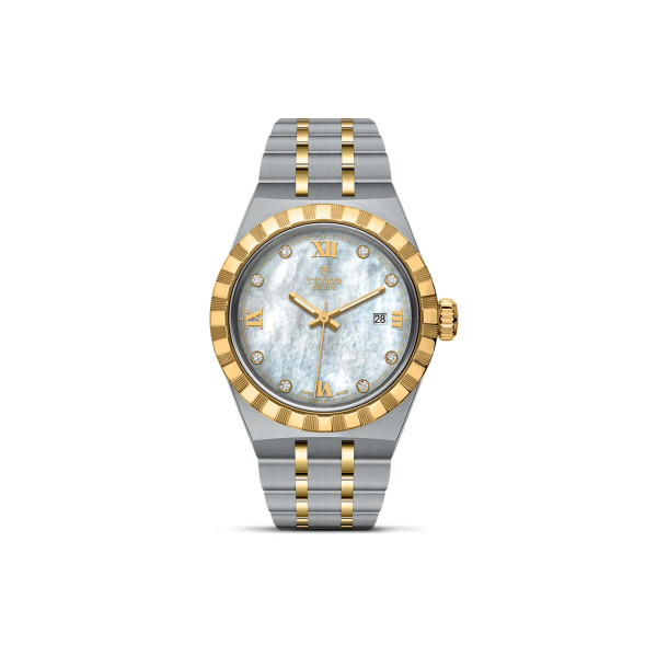 Weißes Perlmutt mit Diamantindizes und applizierten römischen Ziffern