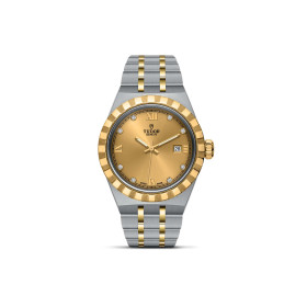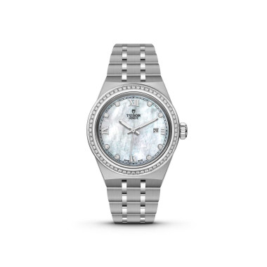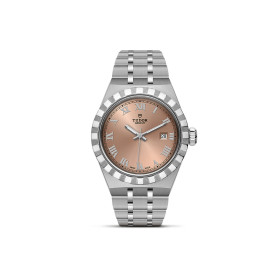 Ref. M28320-0001 - Mit integriertem Metallarmband, gekerbter oder diamantbesetzter Lünette und automatischem Uhrwerk ist die TUDOR Royal Linie der Inbegriff von vielseitiger und sportlicher Eleganz. - Der Name „Royal“ wurde von TUDOR erstmals in den 1950er-Jahren verwendet, um die herausragende Qualität seiner Armbanduhren hervorzuheben. Die TUDOR Royal Linie ist Teil dieses Erbes, da sie sportlich-elegante Uhren mit Selbstaufzug und integrierten Armbändern umfasst, die sowohl erschwinglich als auch kompromisslos sind. Eine herausragende technische Leistung und eine raffinierte Ästhetik sind Merkmale dieser Linie, einer Mischung aus klassischer Armbanduhr und Sportuhr. Die Royal ist in Edelstahl oder in Gold und Edelstahl sowie in vier Größen mit neun verschiedenen Zifferblättern erhältlich.