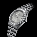 Gekerbte Lünette aus Edelstahl, abwechselnd gefräste Rillen und polierte Oberflächen