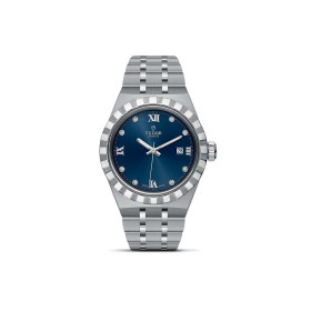 Ref. M28403-0009 - TUDOR hat die Auswahl an Zifferblättern der beliebten Royal Linie um ein lachs- sowie ein schokoladenfarbenes Zifferblatt im Sonnenschliff erweitert, die durch eine überraschende und erlesene Optik überzeugen. Die Royal Linie bietet sportliche und schicke Uhren mit Selbstaufzug sowie integrierten Armbändern, die sich durch Erschwinglichkeit und Eleganz gleichermaßen auszeichnen. Eine herausragende technische Leistung und eine raffinierte Ästhetik; diese Linie verkörpert eine Mischung aus klassischer Armbanduhr und Sportuhr. Der Name „Royal“ wurde von TUDOR erstmals in den 1950er-Jahren verwendet, um die herausragende Qualität seiner Armbanduhren hervorzuheben, die bis heute Bestand hat. Die Royal ist in Edelstahl oder in Gelbgold und Edelstahl sowie in vier Größen mit insgesamt dreizehn verschiedenen Zifferblättern für jeden Geschmack erhältlich. Alle Zifferblätter verfügen über diese applizierten Ziffern oder eine Kombination aus applizierten Ziffern und acht Diamantindizes.