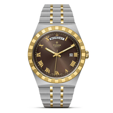 Ref. M28603-0007 - TUDOR hat die Auswahl an Zifferblättern der beliebten Royal Linie um ein lachs- sowie ein schokoladenfarbenes Zifferblatt im Sonnenschliff erweitert, die durch eine überraschende und erlesene Optik überzeugen. Die Royal Linie bietet sportliche und schicke Uhren mit Selbstaufzug sowie integrierten Armbändern, die sich durch Erschwinglichkeit und Eleganz gleichermaßen auszeichnen. Eine herausragende technische Leistung und eine raffinierte Ästhetik; diese Linie verkörpert eine Mischung aus klassischer Armbanduhr und Sportuhr. Der Name „Royal“ wurde von TUDOR erstmals in den 1950er-Jahren verwendet, um die herausragende Qualität seiner Armbanduhren hervorzuheben, die bis heute Bestand hat. Die Royal ist in Edelstahl oder in Gelbgold und Edelstahl sowie in vier Größen mit insgesamt dreizehn verschiedenen Zifferblättern für jeden Geschmack erhältlich. Alle Zifferblätter verfügen über diese applizierten Ziffern oder eine Kombination aus applizierten Ziffern und acht Diamantindizes.