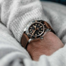 In eine Richtung drehbare Lünette in Edelstahl mit Zahlenscheibe aus mattschwarz eloxiertem Aluminium
