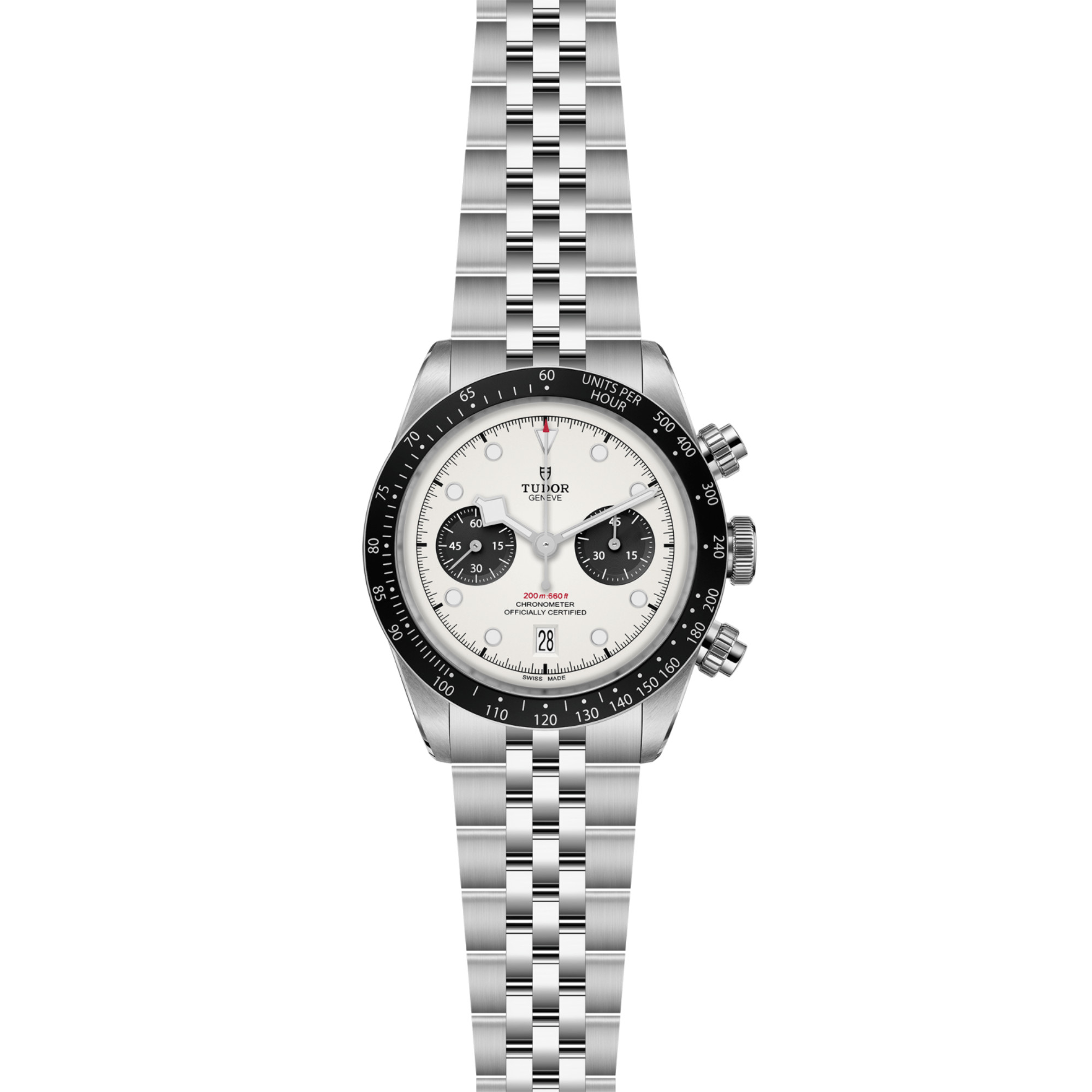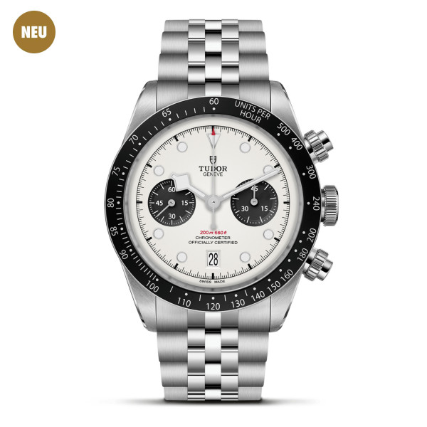 Ref. M79360N-0014 - Das Modell ist mit einem dreireihigen Band mit Nietenoptik oder einem fünfreihigen Edelstahlband erhältlich, wobei das dreireihige Armband von den vernieteten Armbändern mit Faltschließen inspiriert ist, die TUDOR in den 1950er- und 1960er-Jahren herstellte. Beide Armbänder sind mit einer TUDOR „T‑fit“‑Schließe mit Schnellverstellsystem ausgestattet. Dieses praktische und ohne zusätzliche Hilfsmittel zu bedienende System bietet fünf Positionen und ermöglicht den Trägern eine direkte Einstellung des Armbands über eine Länge von 8 mm.