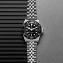 In eine Richtung drehbare Lünette mit 60-Minuten-Graduierung in Edelstahl und schwarzer Zahlenscheibe in Aluminium