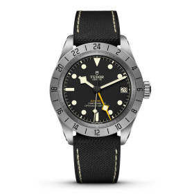 Springende Stunden (zweite Zeitzone) mit 24-Stunden-Anzeige sowie zentrale Minuten- und Sekundenzeiger,