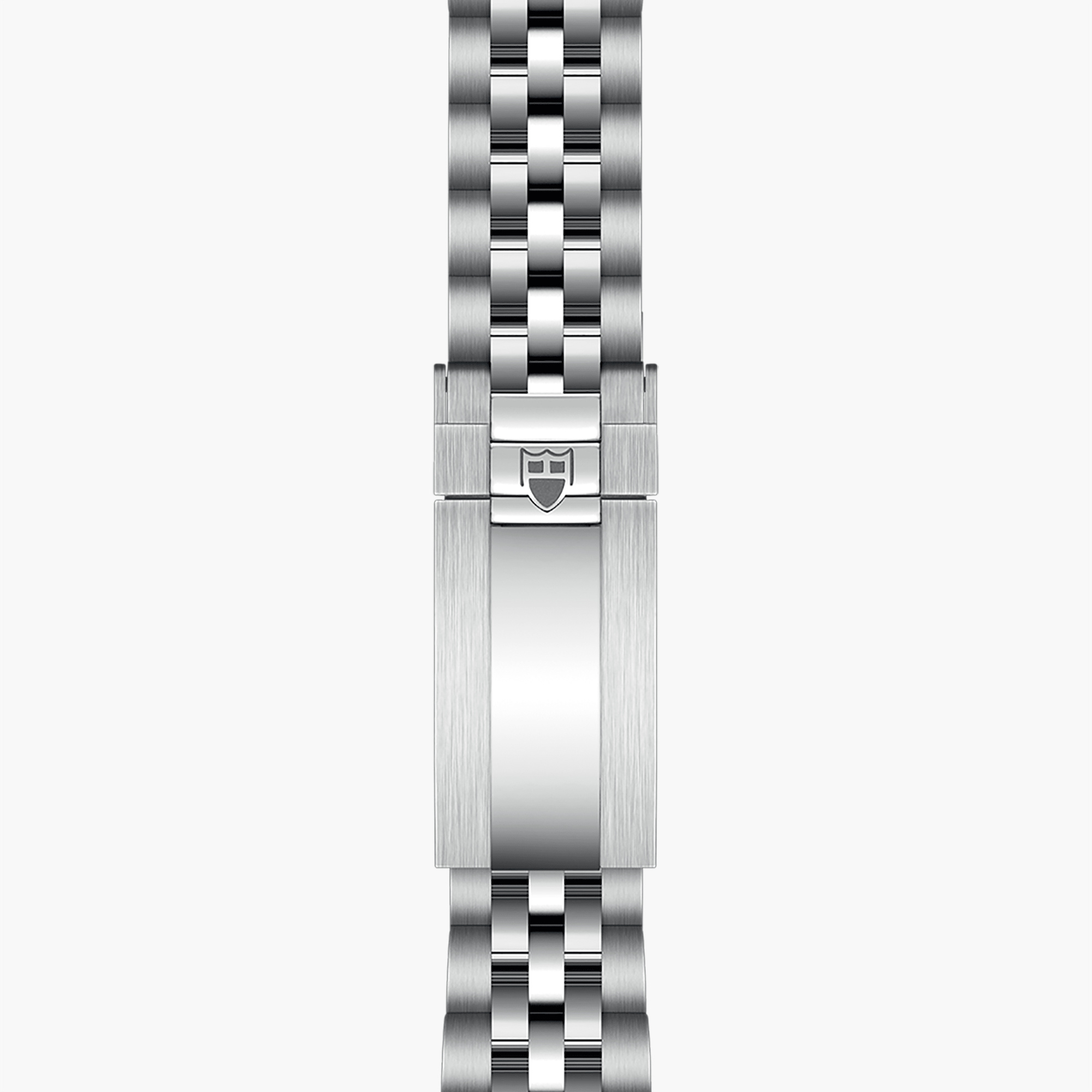 Ref. M79600-0006 - Die Black Bay 31 Modelle verleihen der Black Bay Linie eine einzigartige Ästhetik. Die abgerundeten Gehäuse zeichnen sich durch eine Oberflächenkombination aus, die die Uhr auf zeitgemäße Art und Weise charakterisiert und leicht vom Stil der legendären Funktionsuhr der Marke abweicht, um optisch und haptisch mit raffinierter, vielseitiger Unisex-Eleganz zu überzeugen. Dank der Manufakturwerke befinden sich die Modelle auf dem neuesten technischen Stand der Uhrmacherkunst. Die Black Bay 31 Modelle sind mit einem fünfreihigen Armband in Edelstahl 316L ausgestattet. Sie verfügen darüber hinaus über eine robuste Schließe in Edelstahl 316L mit dem TUDOR „T‑fit“-System zum schnellen Verstellen der Länge. Dieses praktische und ohne zusätzliche Hilfsmittel zu bedienende System bietet fünf Positionen und ermöglicht Trägern der Uhr eine direkte Einstellung des Armbands über eine Länge von 8 mm.