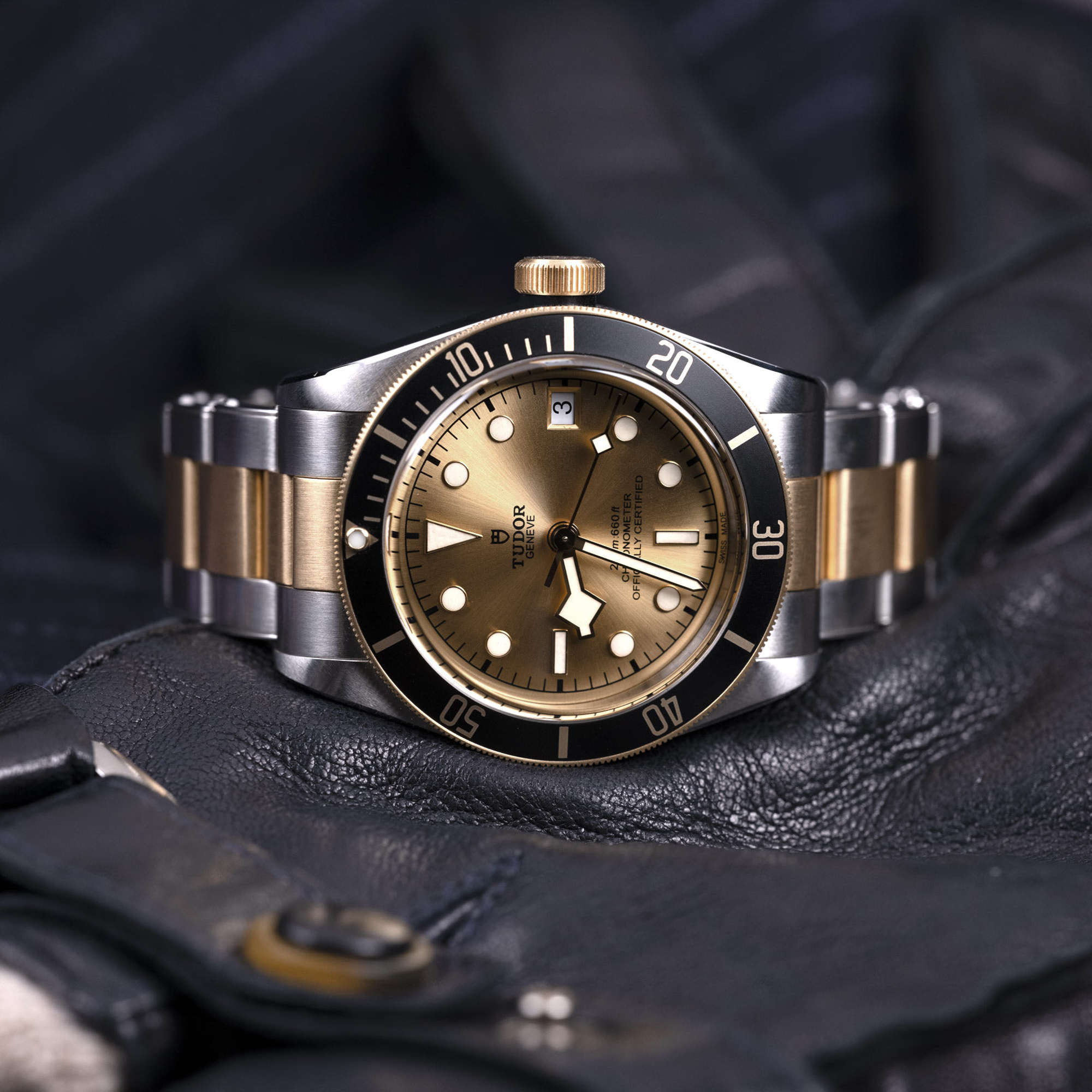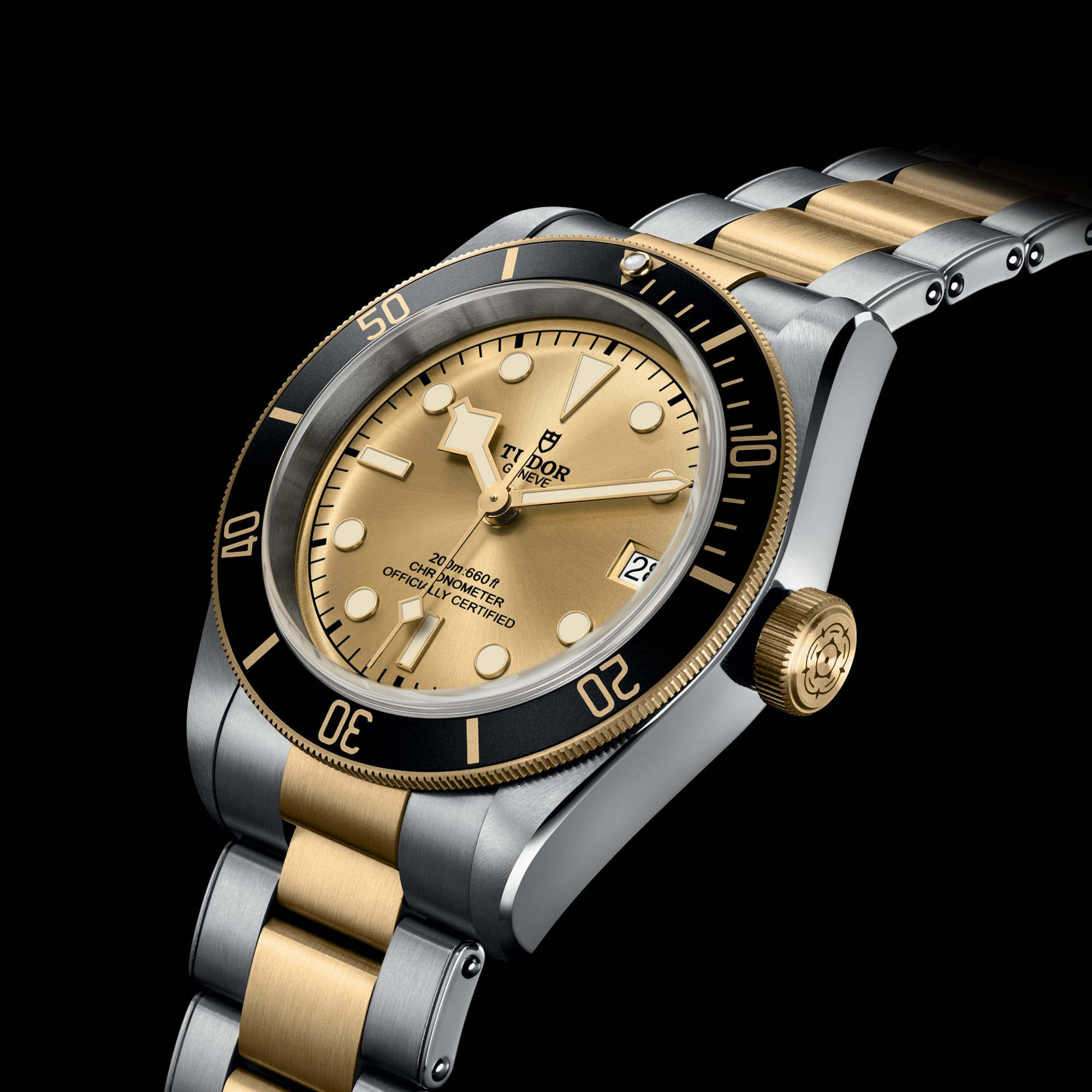 Verschraubbare Aufzugskrone in Gelbgold mit gravierter und schwarz lackierter TUDOR Rose