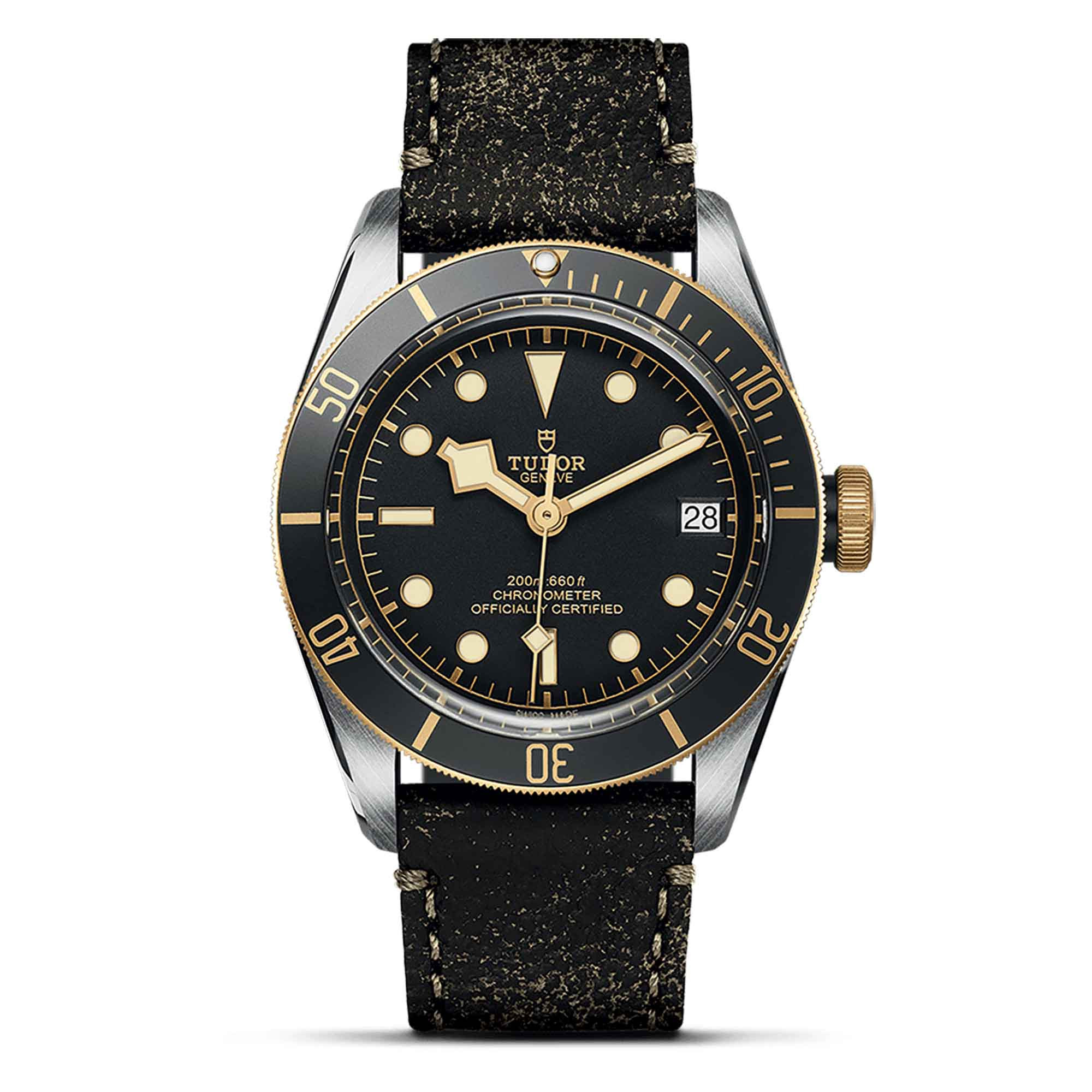 Verschraubbare Aufzugskrone in Gelbgold mit gravierter und schwarz lackierter TUDOR Rose